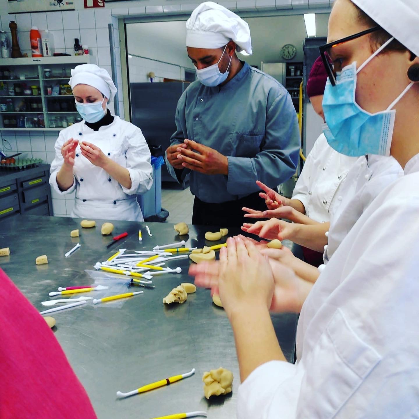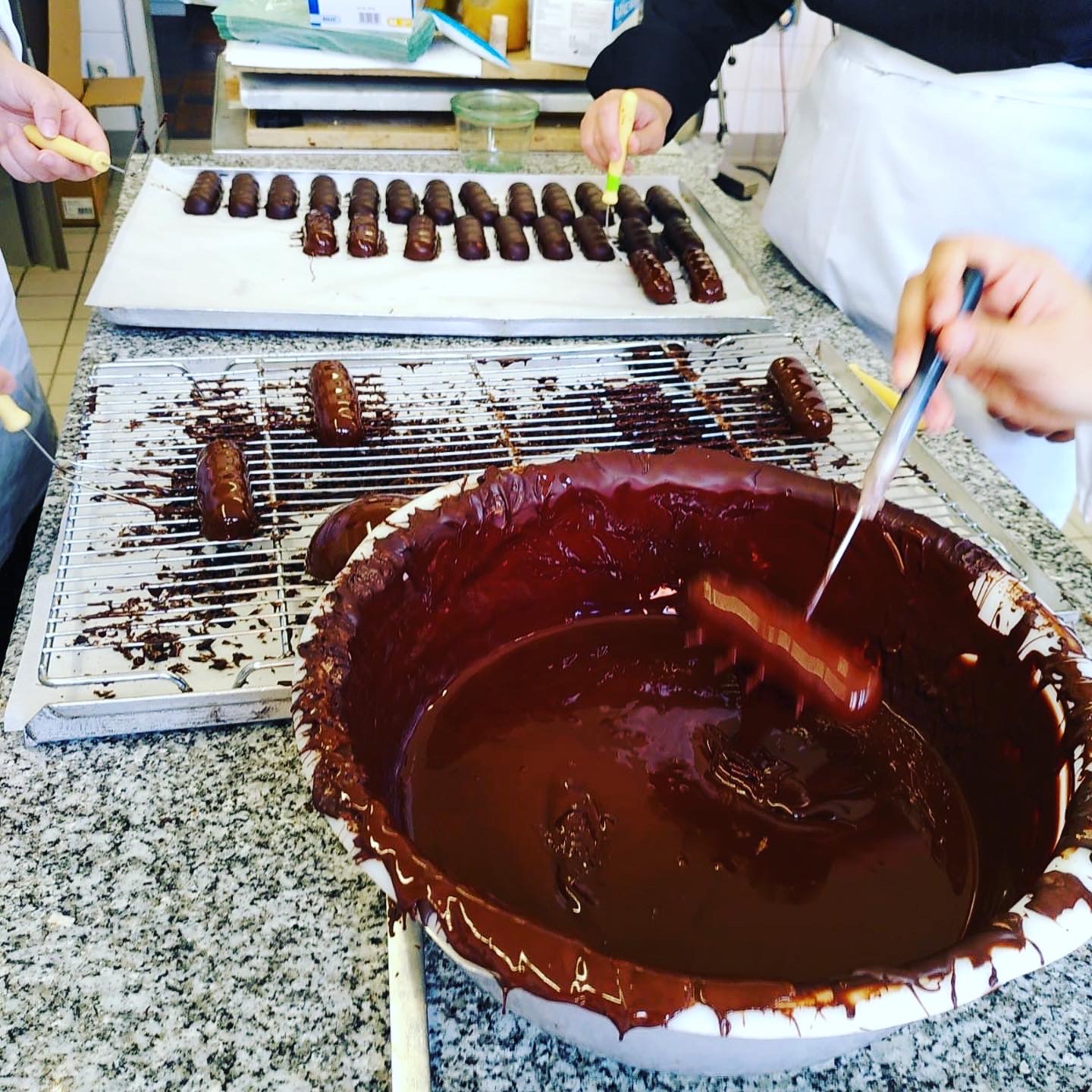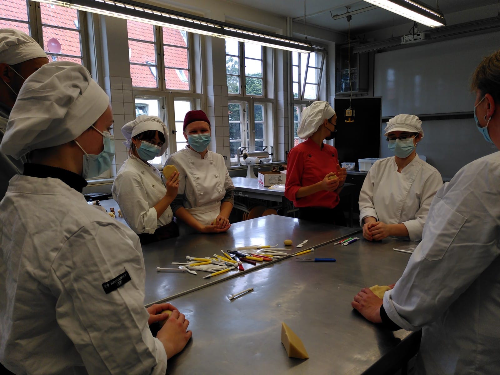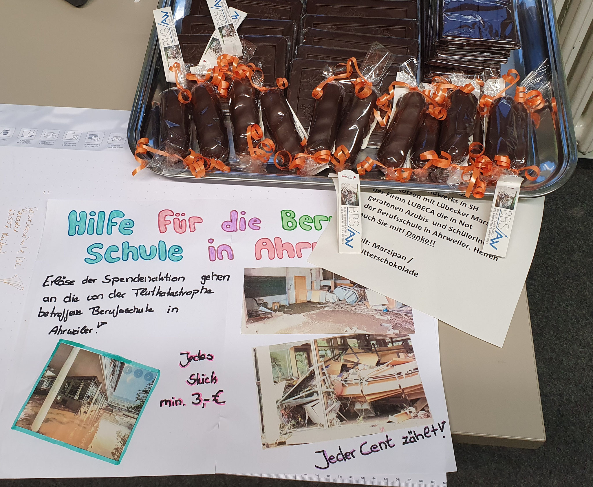 Die Schülerinnen und Schüler der Konditor-Mittel- und Unterstufen haben Marzipanbrote und Tafelschokoladen hergestellt und im Verwandten- und Bekanntenkreis angeboten. Auf diese Weise haben bis jetzt mehrere hundert Marzipanbrote und Schokoladentafeln ihre Abnehmer gefunden und Spendengelder für die Lehrkräfte und Schüler im Ahrtahl gesammelt.
